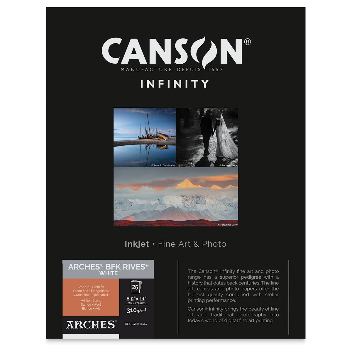 Images printed on Canson Infinity Arches BFK Rives Inkjet Fine Art and Photo Paper have superb tonal range with excellent highlights and mid-tones. Using prestigious BFK Rives paper as its base, this 100% cotton, mouldmade 310 gsm archival paper for inkjet printers is pH-neutral and acid-free. The …