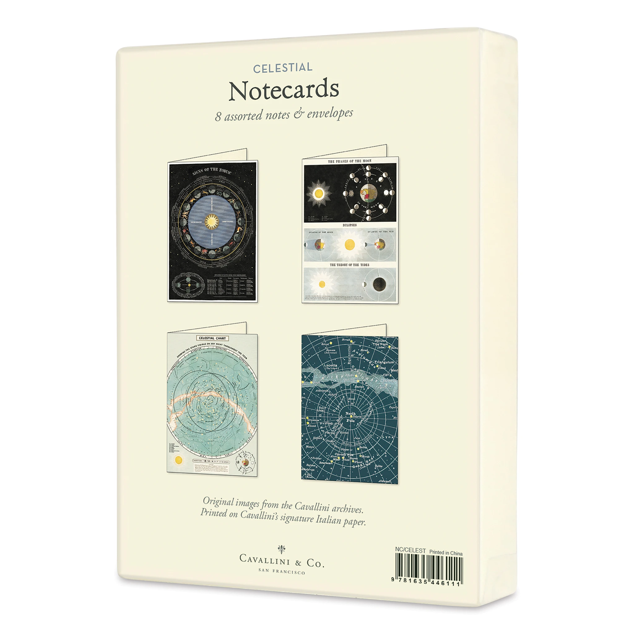 Use Cavallini Celestial Boxed Note Cards as birthday cards, greeting cards, or use them to keep in touch with friends and family. Printed on Cavallini’s signature Italian paper stock, these eight folded cards feature four different star and moon-themed designs with two cards for each design. The car…