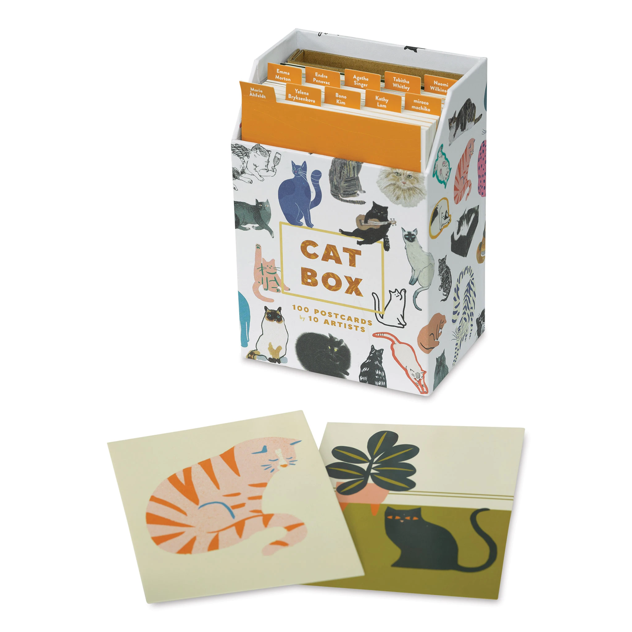 Send messages and thank-you notes to all your feline-loving friends with the Cat Box Postcard Set. This set includes 100 different postcards featuring delightful images of cats wearing hats, cats sleeping in strange places, mermaid cats, and many more. With artwork from 10 talented artists, you’re s…
