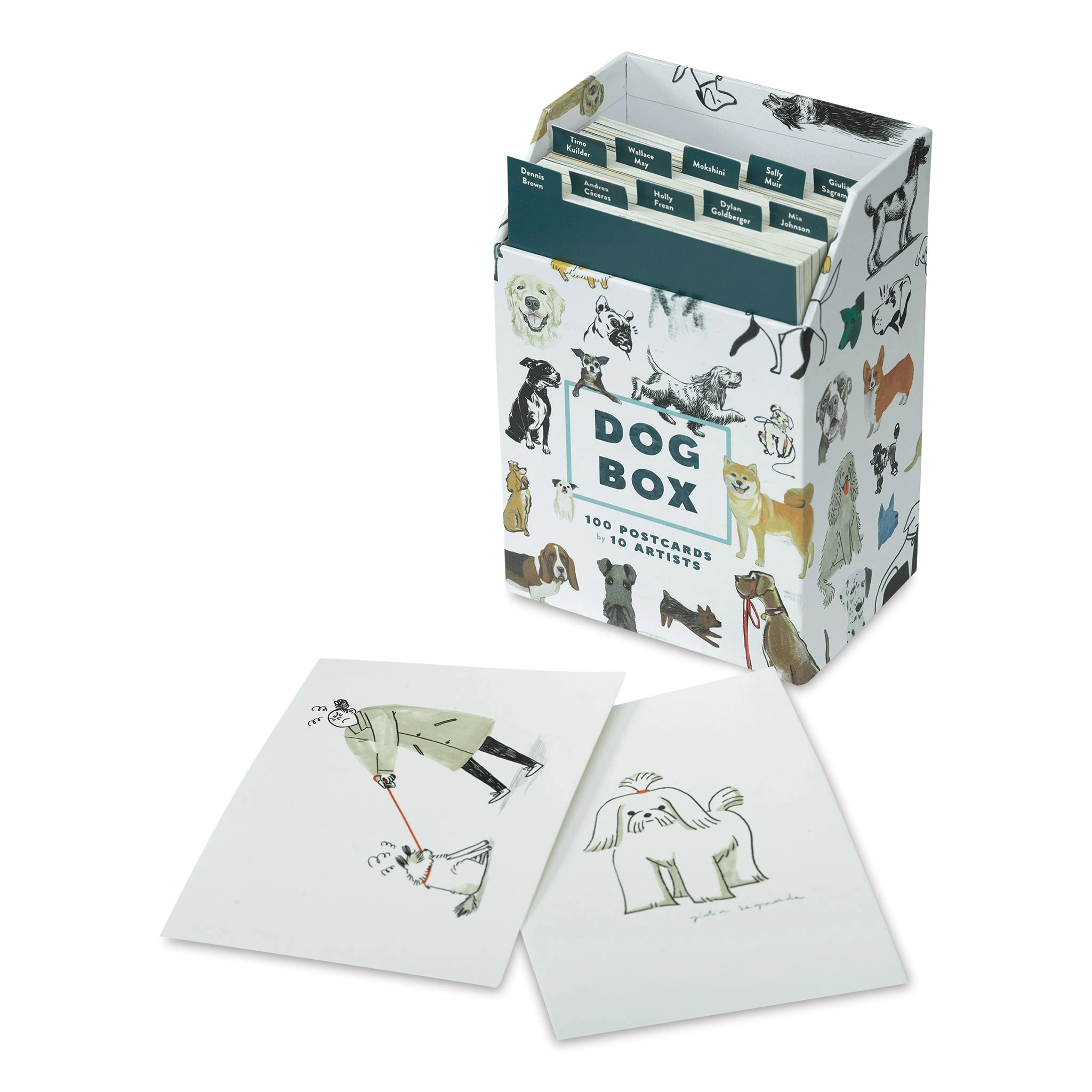 You and your pooch can send messages to your friends and family with the Dog Box Postcard Set. This postcard collection includes 100 unique postcards that feature adorable artwork of dogs and puppies from 10 different artists. Choose from images of skateboarding bulldogs, yoga-posing yorkies, lovabl…