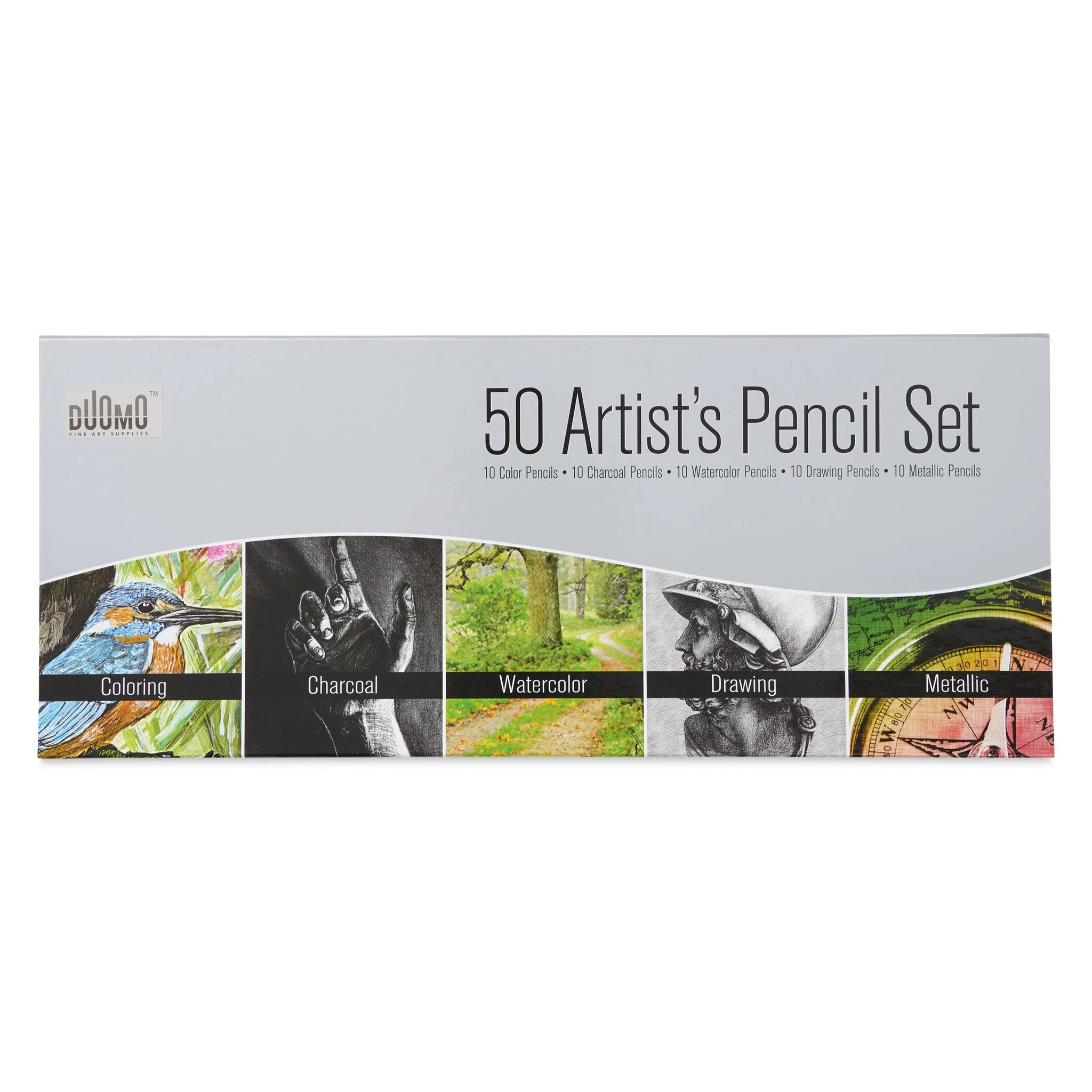 Whether you’re a student looking to experiment with different drawing styles, or an accomplished artist rounding out their supplies, the Duomo Artist’s Mixed Media Pencils Set has something for everyone. This set comes in a lift-lid box and provides you with colored pencils, charcoals, metallics, an…