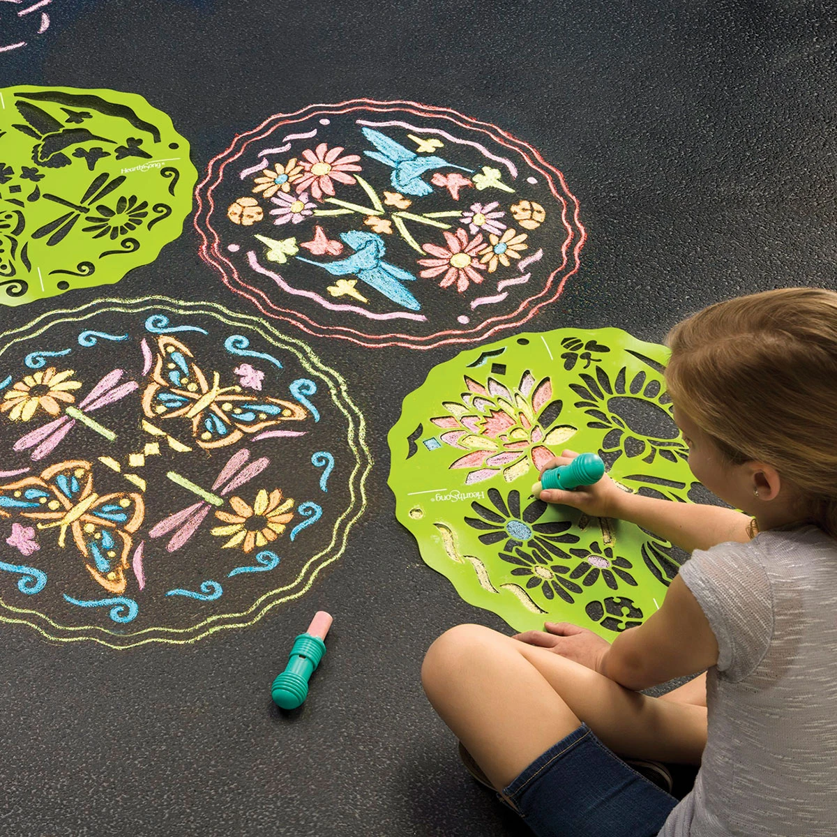 Turn boring sidewalks and driveways into colorful works of art! Hearthsong Chalkscapes Stencil Sets include everything you need to get creative right outside your front door.