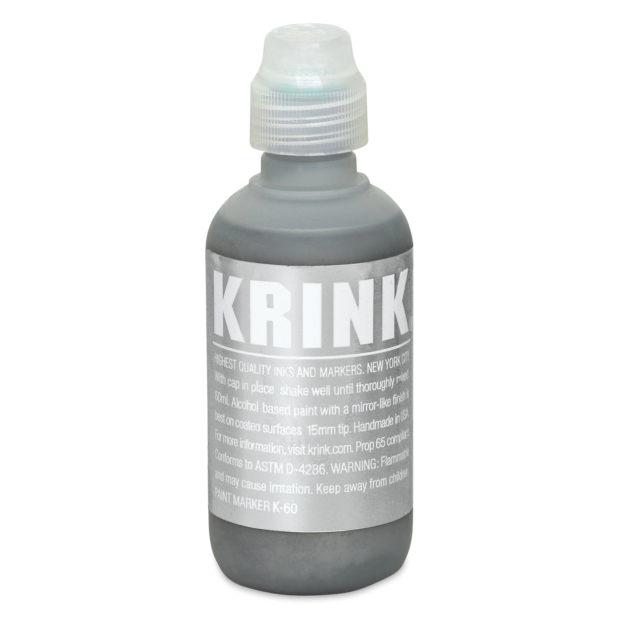 Add bold metallic effects to a variety of surfaces with Krink K-60 Chrome Paint Markers. Excellent for use on light and dark surfaces, K-60 Chrome features a unique, alcohol-based ink that quickly dries to an opaque, permanent, chrome-like finish. A round 15 mm tip and large, 2 oz capacity bottle ar…