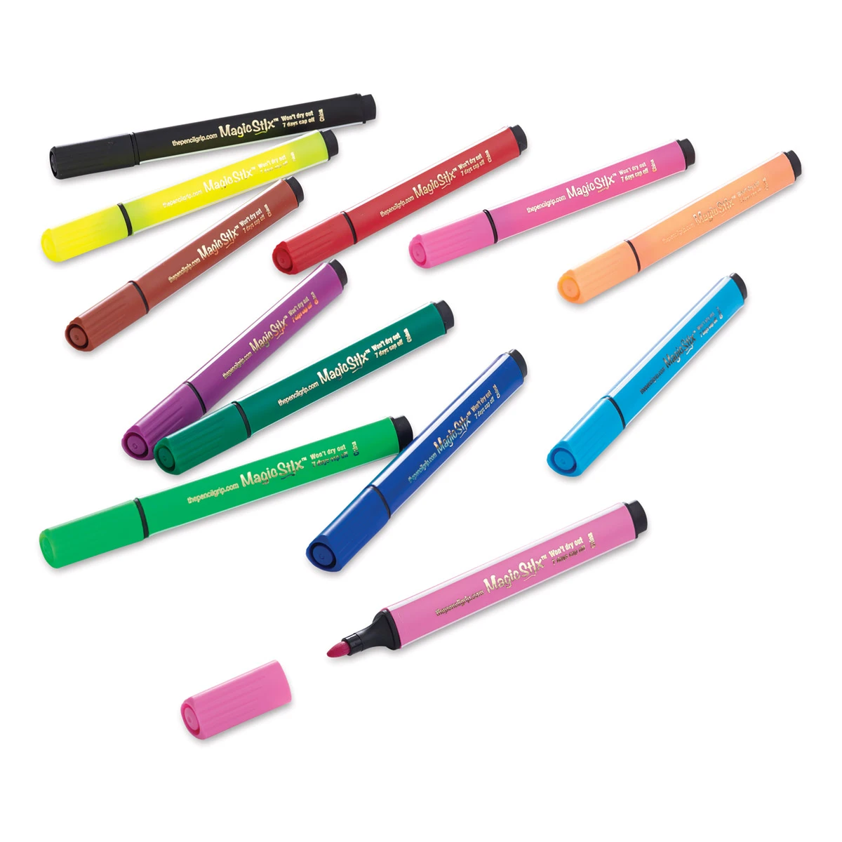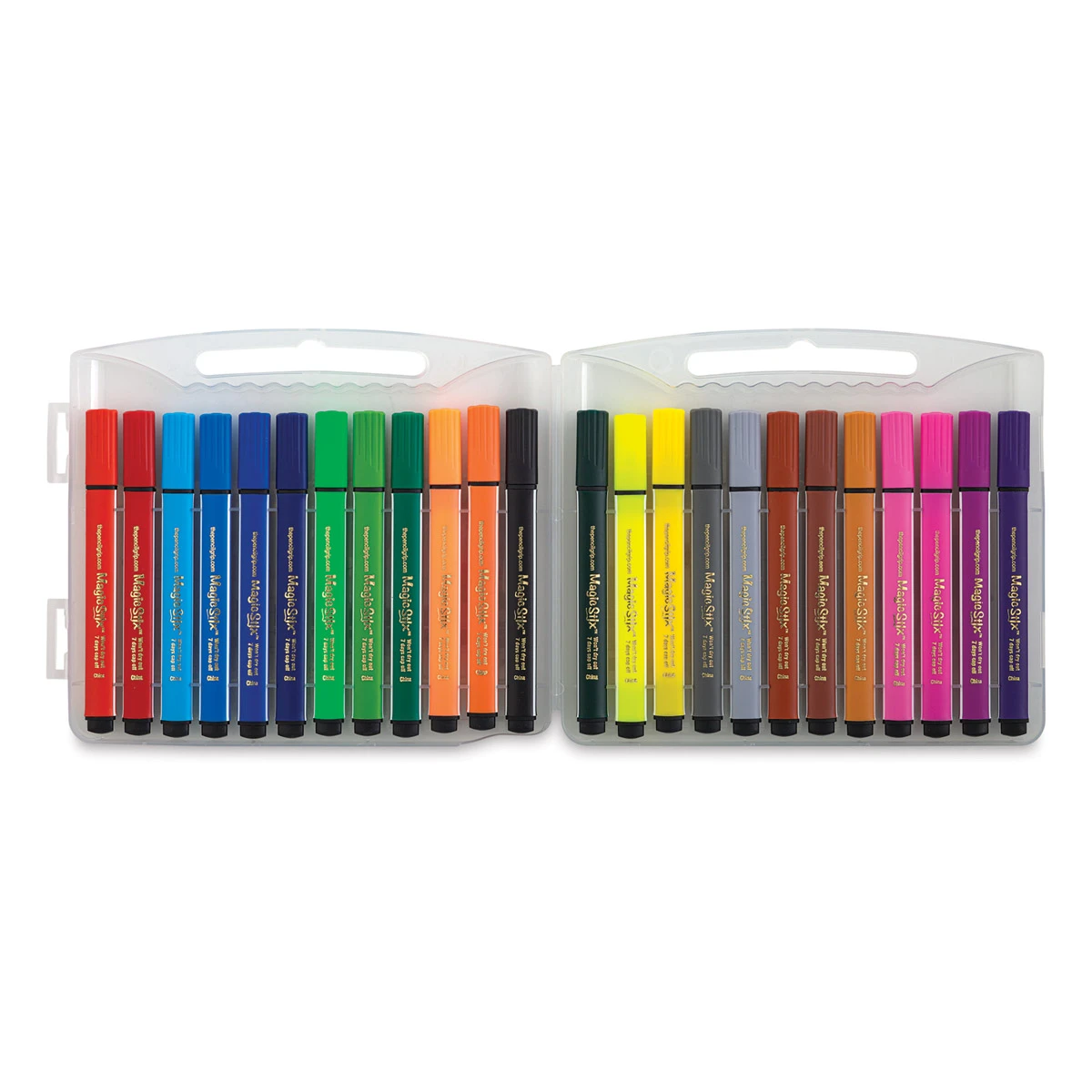 Draw, doodle, and write with the Magic Stix Triangular Marker Sets! Perfect for budding artists, Magic Stix won’t dry out—even after seven days without their caps, guaranteed!