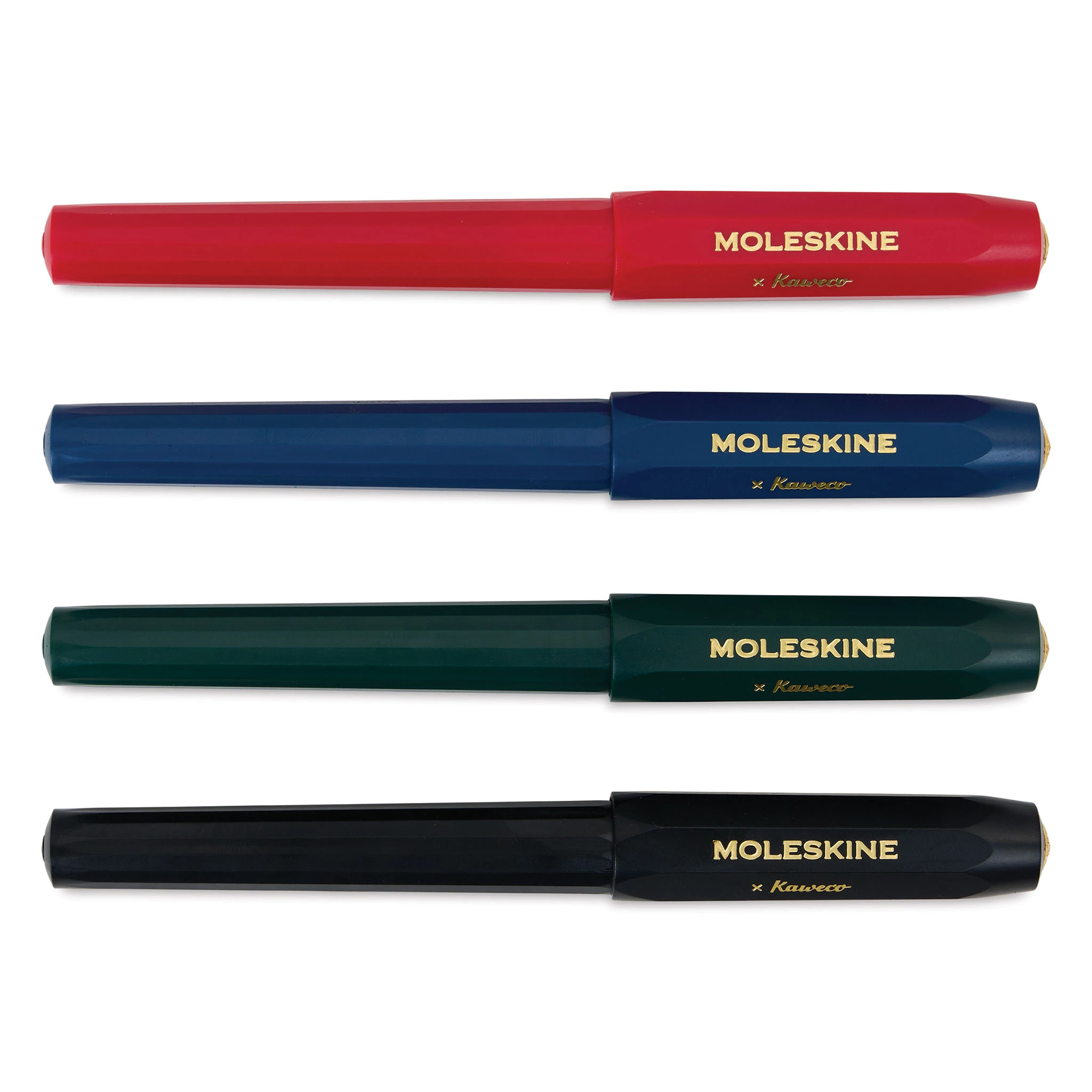 Upgrade your writing tools with Moleskine Kaweco Ballpoint Pens. With their timeless style and hexagonal shape, these refillable pens bring a touch of elegance to your everyday notetaking. Each pen comes with one G2 type 1.0 mm metal cartridge with blue ink. The pens are made from ABS plastic and th…