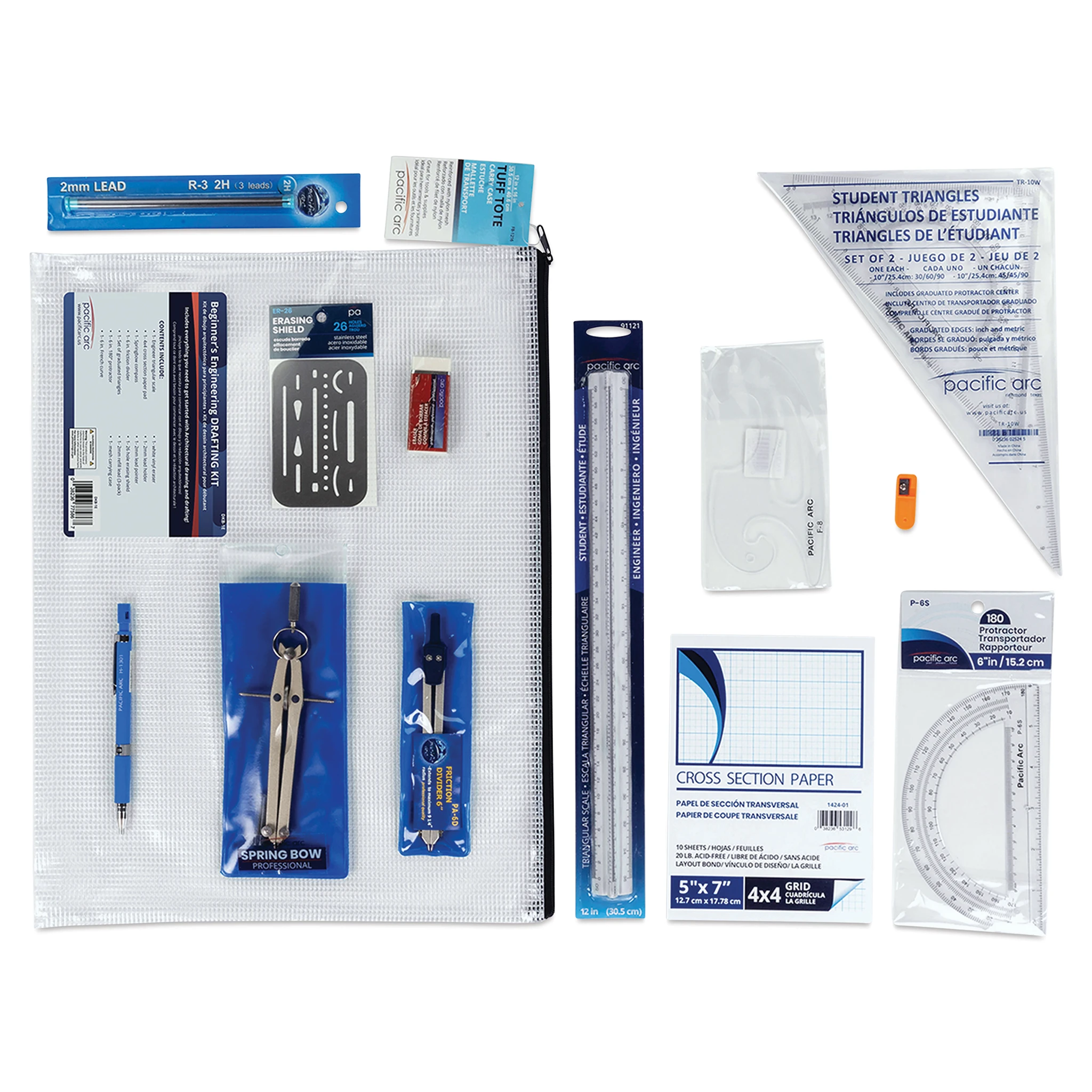 Pacific Arc Beginner’s Drafting Kits feature a complete assortment of the most popular supplies for architecture and engineering students complete with a durable carrying bag. All supplies are scaled in inches fully divided to 1/16″, plus the following popular architecture scales: 3/32, 3/16, 1/8, 1…