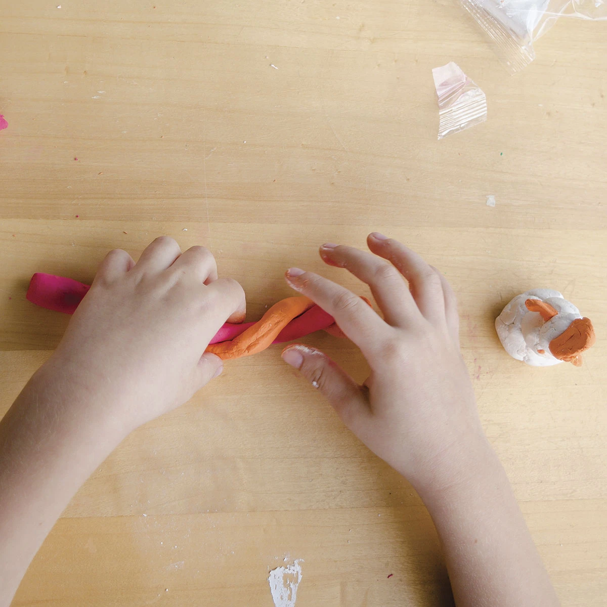 Just pinch off a piece of clay and mold it into a stick, ball, animal shape — anything at all! Blend to make new colors, or use different colors in the same p…