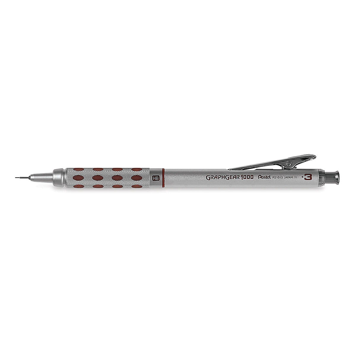 This is a superior pencil for the professional. It features a finely chiseled metallic grip that is inlaid with soft rubber pads for comfort. A dual-action retractor advances/retracts the pencil tip. A different accent color on each identifies the lead thickness.