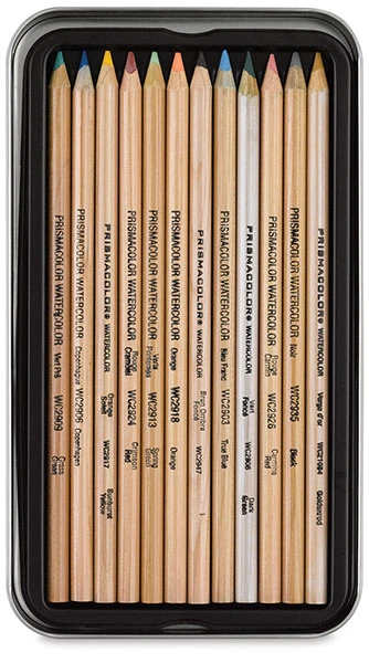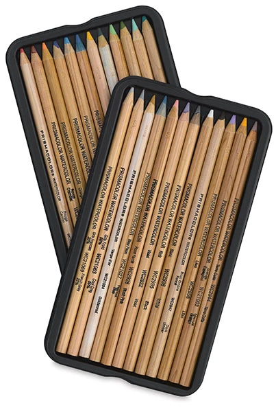 Use these artist-quality, watersoluble colored pencils to create brilliant watercolor effects with brush and water. They feature superior solubility for a smooth, even laydown of color — and they complement Prismacolor’s Art Stix, Verithin and colored pencil palettes.