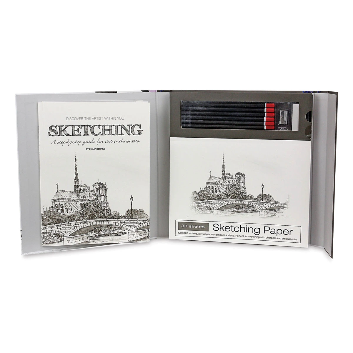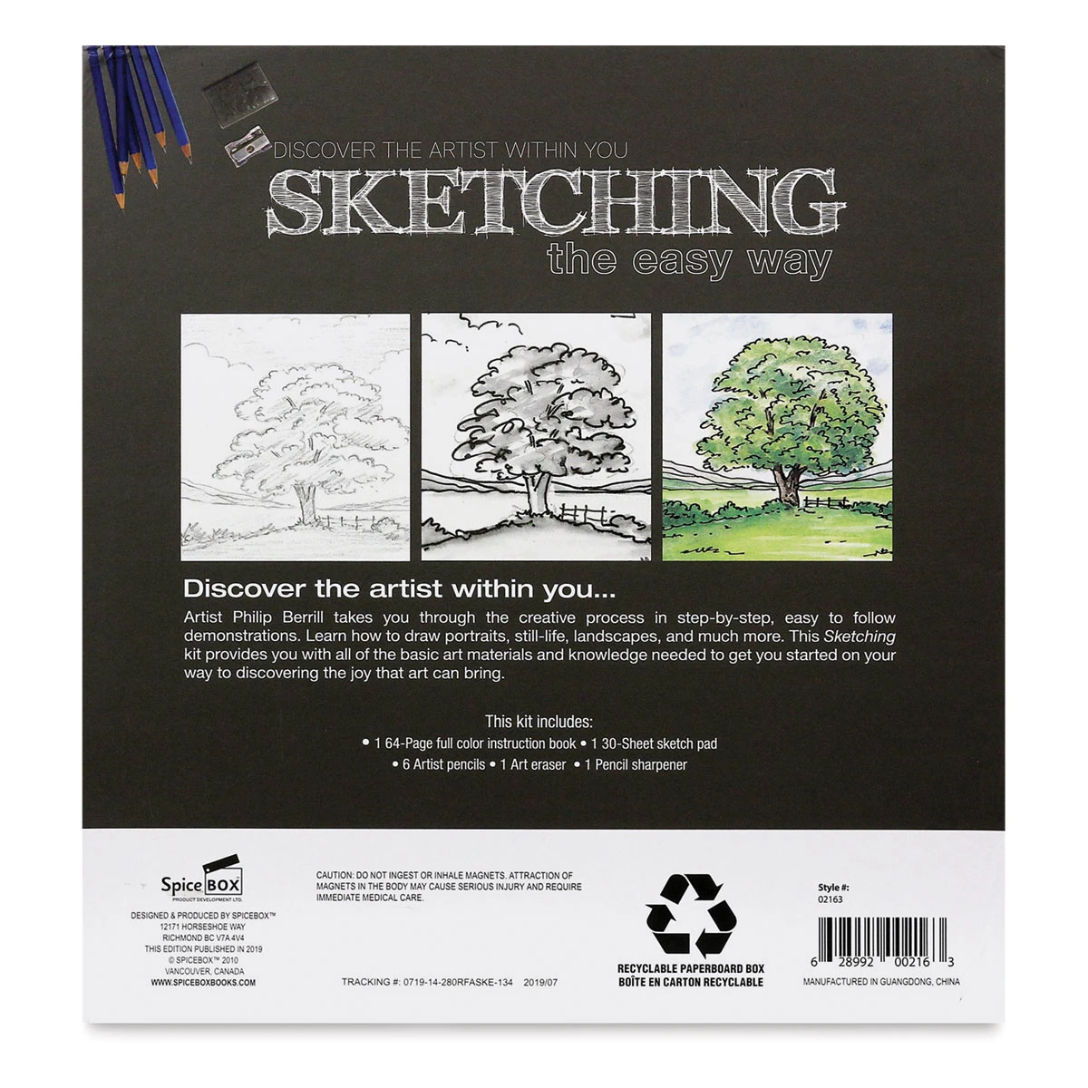 Learn how to draw portraits, still lifes, landscapes, and more with the SpiceBox Art Studio Sketching Kit. Inside the handsome folio you’ll find everything you need to get started, including a 120 gsm smooth white paper sketchpad, six artist pencils, an eraser, sharpener, and a 64-page instruction b…