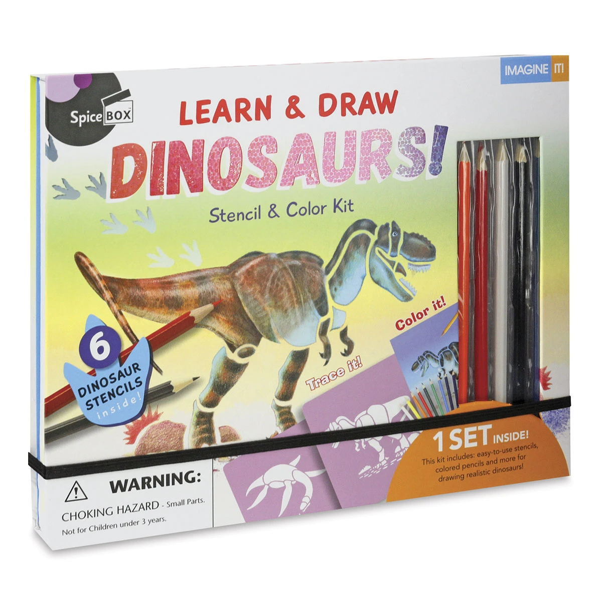 Spicebox Imagine It Dinosaurs Stencil And Color Kit