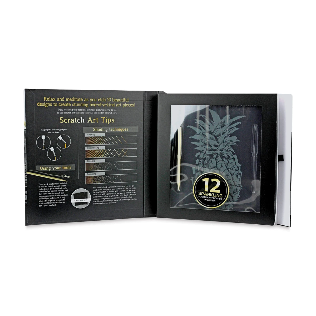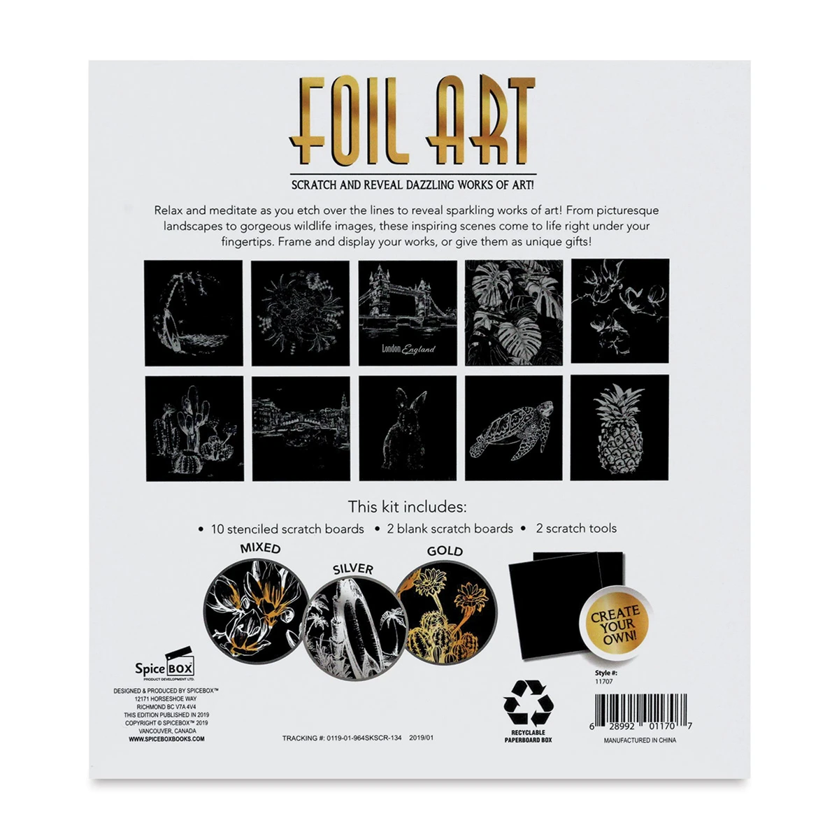 Relax, relieve stress, and create dazzling foil art with the SpiceBox Sketch Plus Deluxe Foil Art Kit. Reveal 10 pre-printed images or use the two blank scratchboards to make your own. The deluxe art pad and tools come in a sturdy signature folio format with a magnetic closure so you can keep your s…