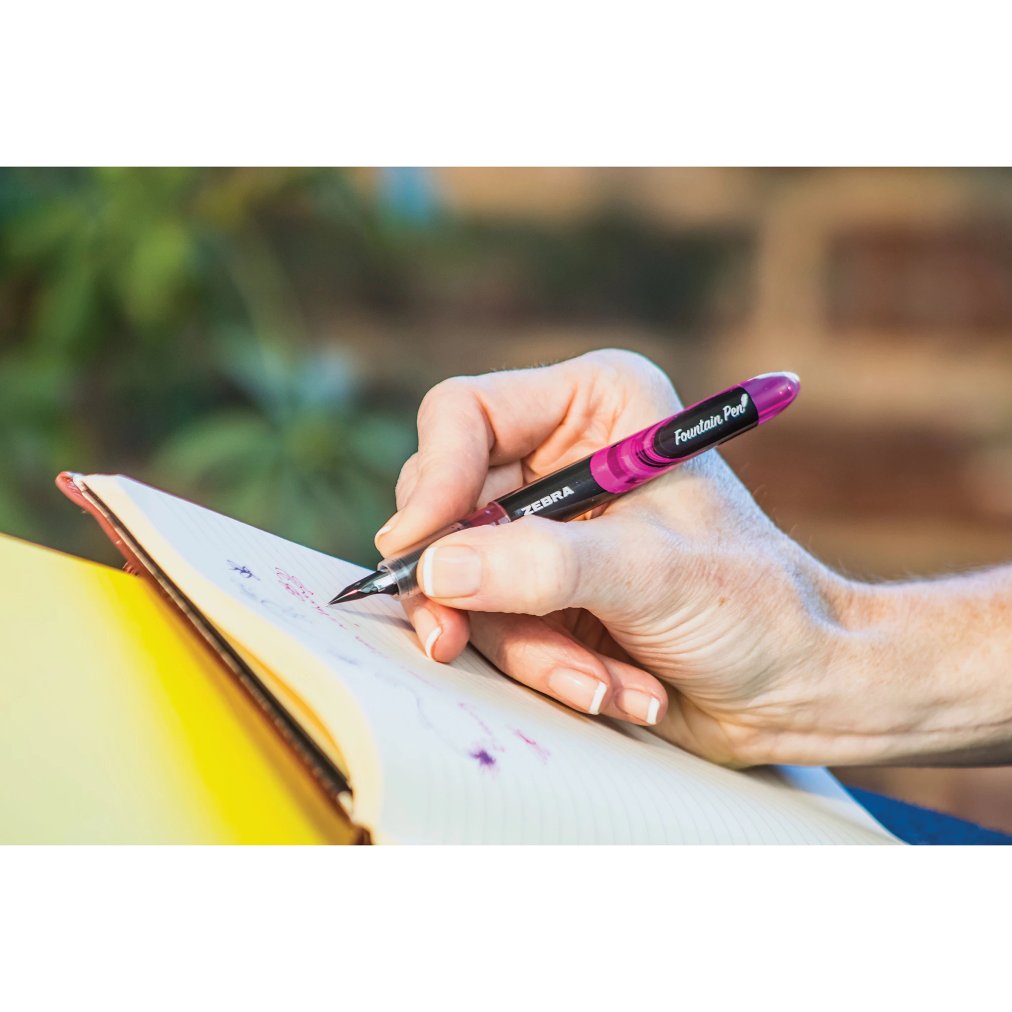 Perfect for fountain pen novices, the Zebra Fountain Pen Set includes seven innovative pre-filled fountain pens featuring high-quality, 0.6 mm stainless steel nibs. A free-flowing ink system ensures perfect lines every time without the need for messy cartridges or refills. Round barrels fit snugly i…